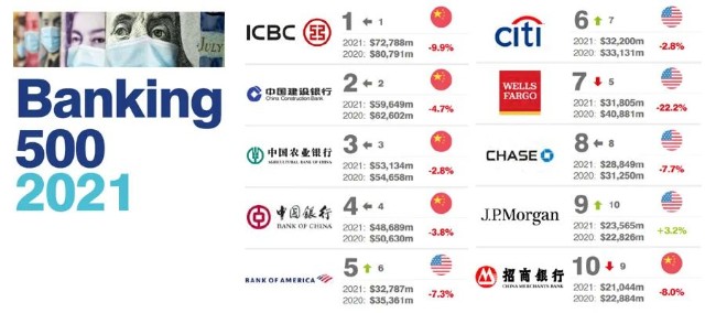 2021全球银行品牌价值500强榜单 中国76家银行上榜 财富号 东方财富网