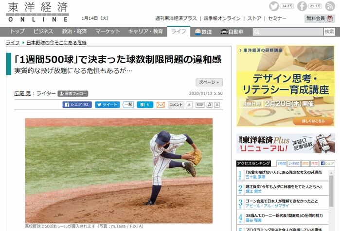野球の記録で話したい 東洋経済オンラインで 球数制限 について評価しています